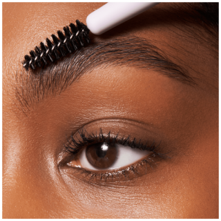 Use essence Brow Spoolie Brush to brush through eyebrow hairs to smooth, groom, and blend brow products into brows.