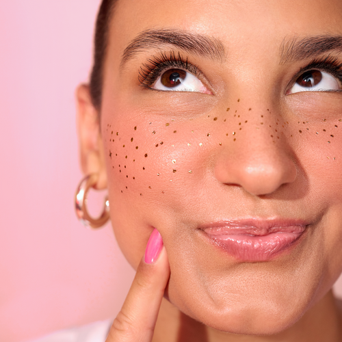 Let your cheeks sparkle with essence Get the Glaze! Freckle Tattoos! This trio of rose-gold, silver, and gold shimmer freckles adds a touch of magic to any makeup look. Perfect for special occasions or just because they’re easy to apply, smudge-proof, and totally charming.