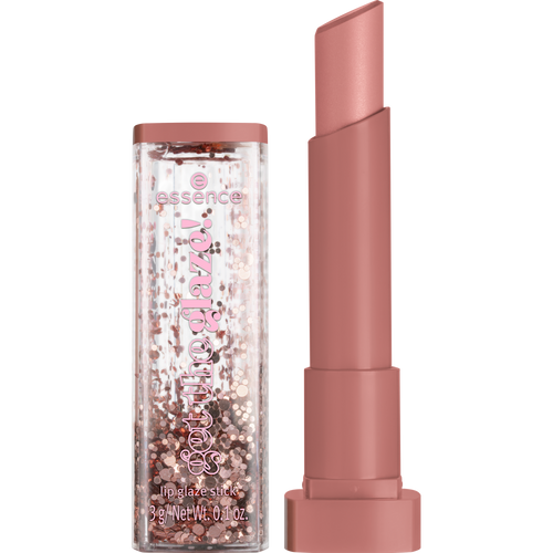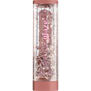 Shine on with essence Get the Glaze! Lip Glaze Stick. This glossy lip balm delivers a soft, natural finish with a subtle vanilla scent. The nourishing, glide-on formula keeps lips feeling smooth and supple, while the fun cap with floating glitter adds a touch of sparkle.