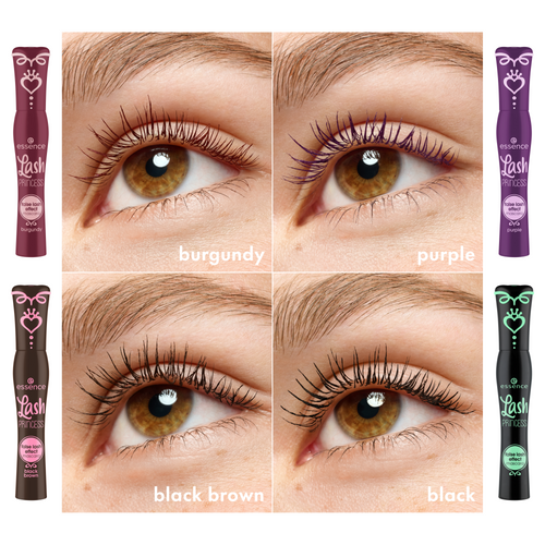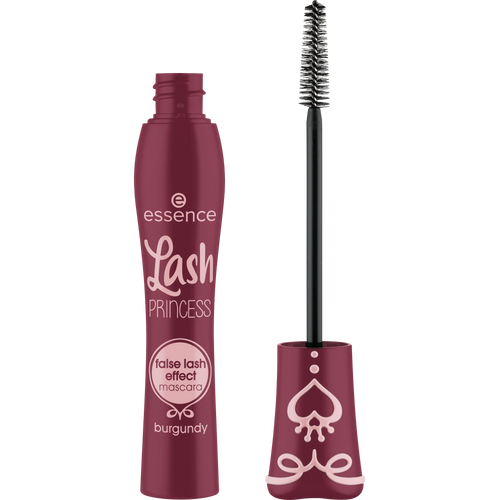 essence Lash Princess False Lash Effect Mascara in Burgundy & Purple delivers dramatic volume, length, and a bold false-lash effect in a beautiful Burgundy or Purple tone. The conical fiber brush grabs every lash to create a lifted, defined look, while the caring formula is enriched with plant-based waxes.