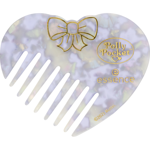 essence Polly Pocket™ X essence Wide-Tooth Comb smooths your strands without snagging, tugging, or drama. Its heart-shaped design brings all the nostalgic feels, and it’s compact enough to pop into any bag for touch-ups on the go.
